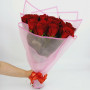 На фото букет из 21 бордовой розы. В составе: роза 21 шт, дизайнерская упаковка 1 шт, атласная лента 1 шт, . Все цветы свежие и ароматные, букет красиво оформлен и отлично подходит для подарка. Доступна доставка цветов или самовывоз.